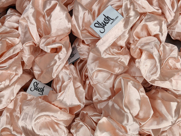 Our scrunchies are made from 100% satin (feels like silk but is isn't derived from the silkworm - making them 100% Vegan Friendly), the smooth surface of the satin ensures there is no friction between that & your hair making it perfect for keeping hair super smooth when sleeping and no kinks if worn all day!